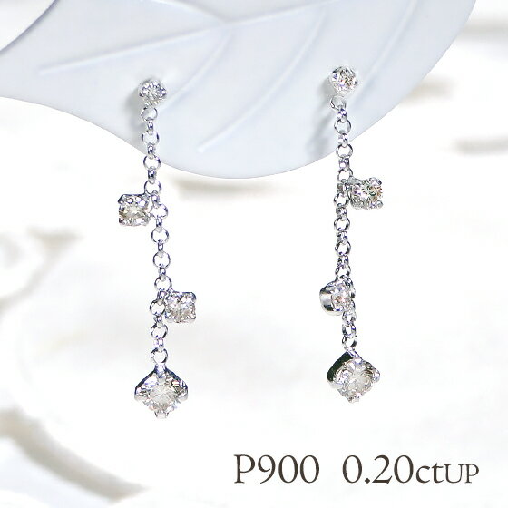 艶やかなプラチナベースに、4石のダイヤモンドをセットした、エレガントなロングピアスです。