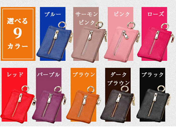 ●素材:外側-本革 内側-ポリエステル ●サイズ:125×85×8mm ●仕様:・6連キーフック ・キーホルダー ・ファスナーポケット ・カードポケット(内側) ●カラバリ:選べる9色 ※サイズは当店平置き外寸サイズです。