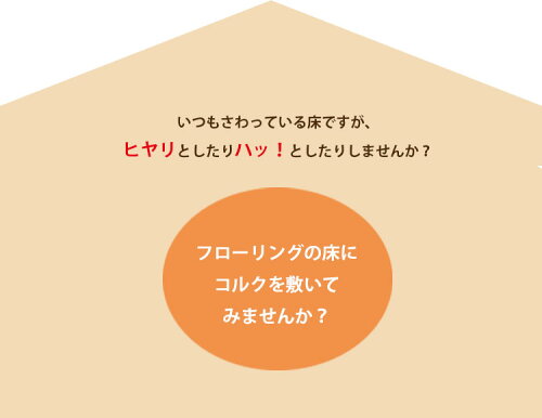 商品詳細 商品名 吸着トッパーコルク 商品説明 ●オール100%コルク床材! ●滑りにくく歩きやすい! ●足音、物の落下音を優しく吸収! ●優れたクッション性! ●素足でもヒヤッとしない! ●水にも強い! ●適温・適湿を保てる! サイズ 3帖タイプ 180×270cm 5mm厚 品質 天然コルク カラー ベージュ 生産国 ポルトガル 東亜コルク トッパーコルク コルク床材