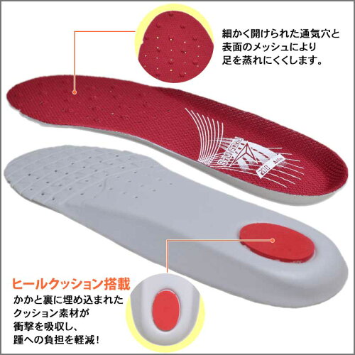 細かく開けられた通気穴と表面のメッシュにより足の蒸れを緩和します。