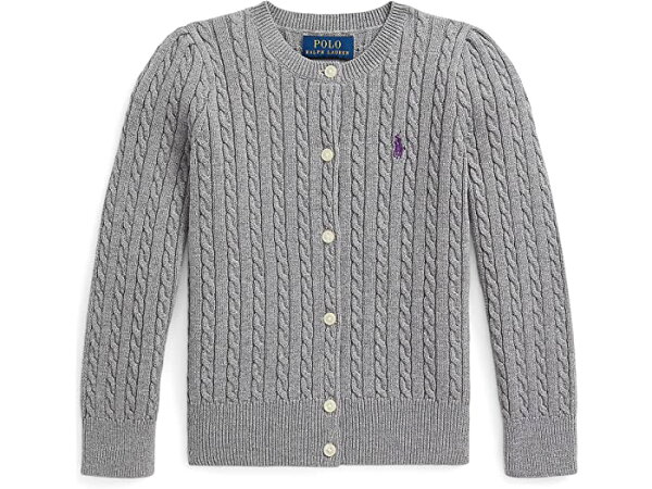 (取寄) ラルフローレン キッズ ガールズ ミニ-ケーブル コットン カーディガン (リトル キッズ) Polo Ralph Lauren Kids girls Mini-Cable Cotton Cardigan (Little Kids) Fawn Grey Heather